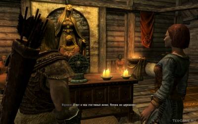 Первым делом, направьтесь в локацию Рифтен и найдите Марамала. Он будет в таверне города или же в храме Мары. Побеседуйте с ним о Храме, а затем и о самой свадьбе. После разговора, приобретите у него амулет.