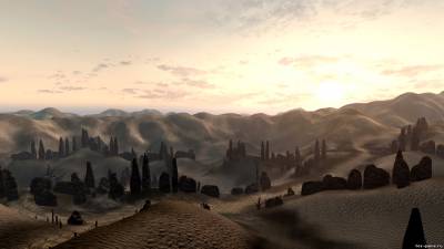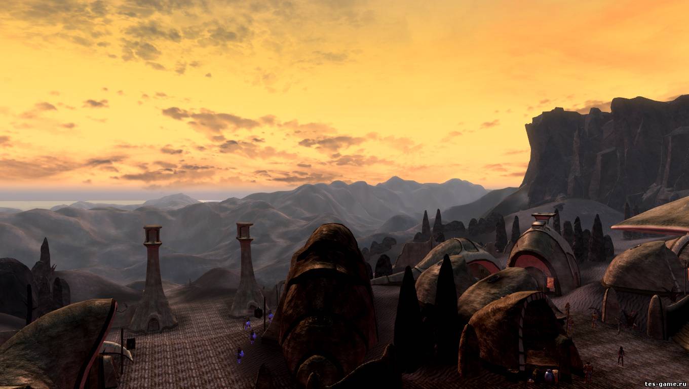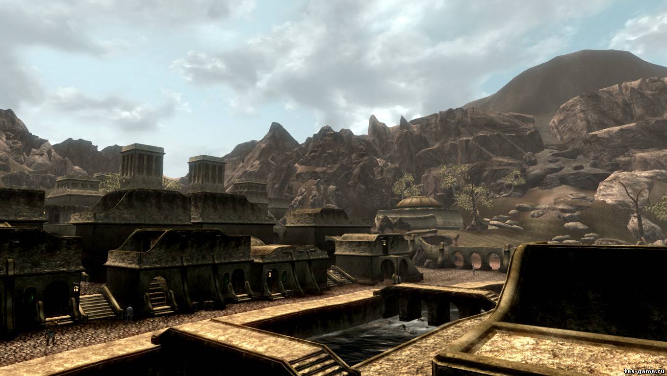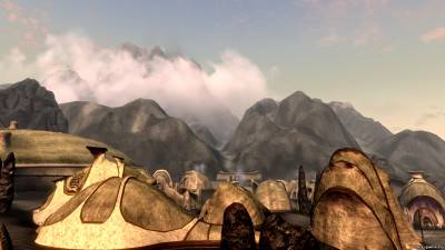 Если в Морровинде вы могли в Балморе пройти через холм, чтобы быстрее добраться до Форта Лунной Бабочки, то здесь не сможете, ибо разработчики сделали высокие горы в стиле пустынных каньонов.